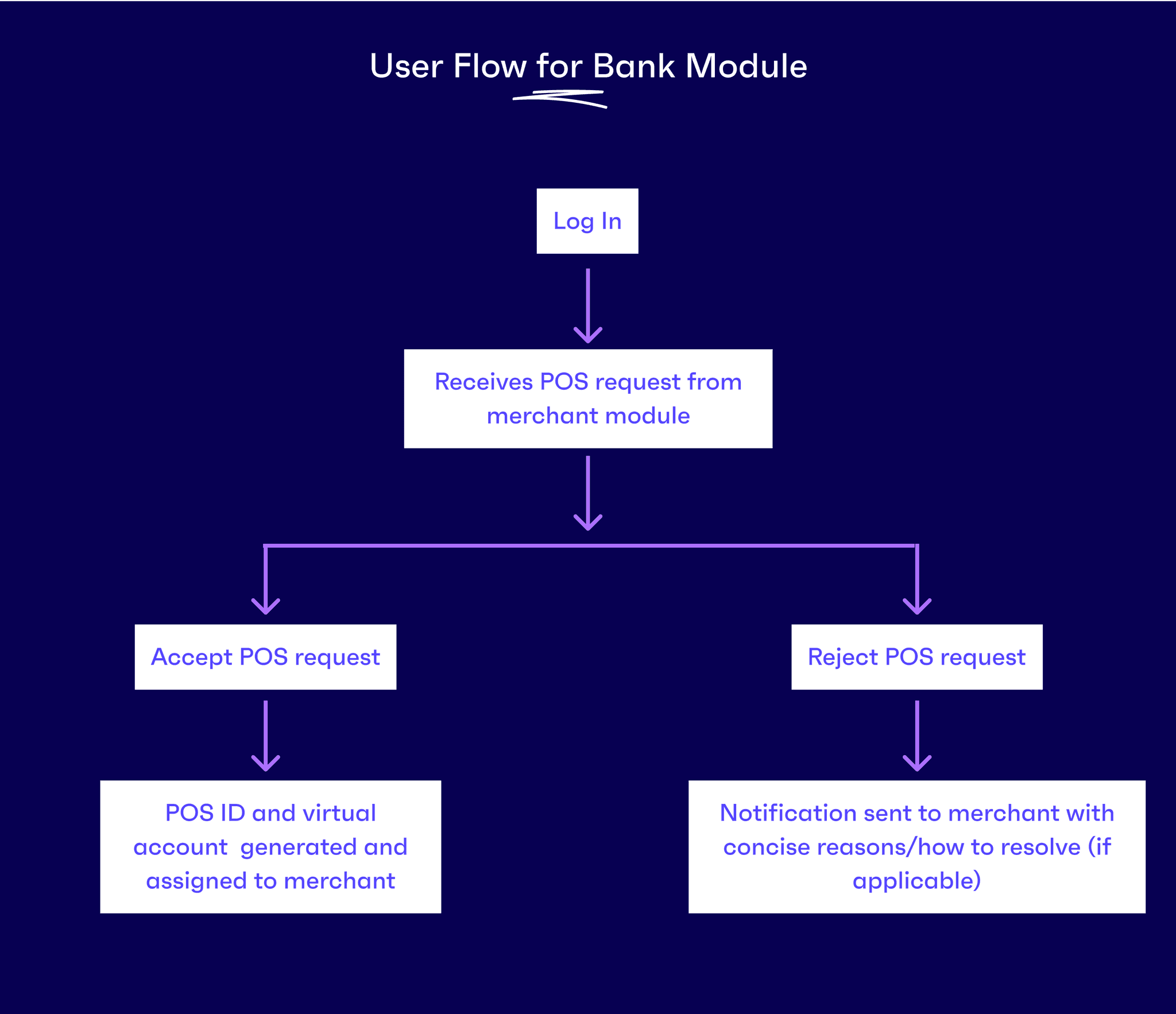 The bank module's primary goal is to create a streamlined process for the bank to handle terminal requests. So, the first step was to create a flow that addressed this: